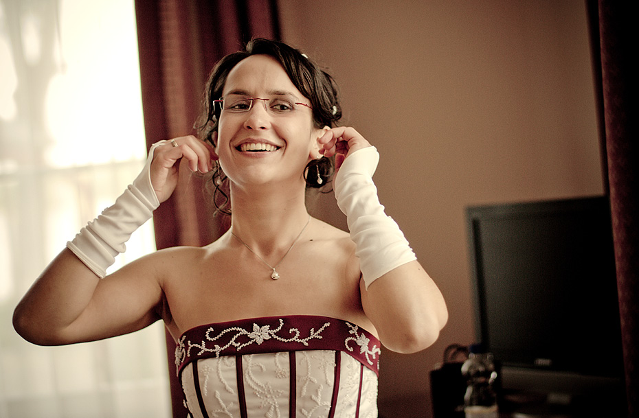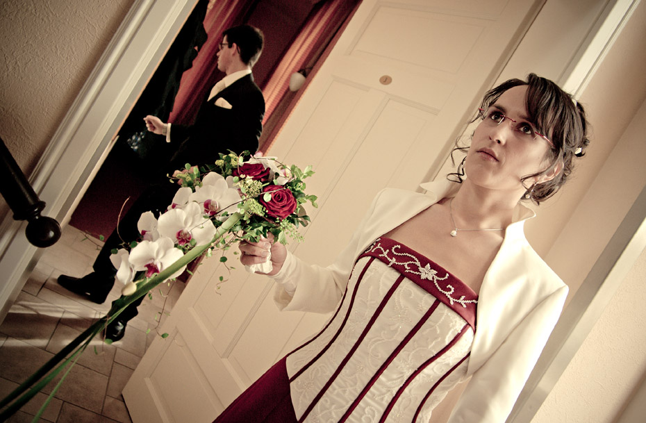 ihre Hochzeit. Obwohl der Tag mit Regen begann, blitzten die ersten Sonnenstrahlen